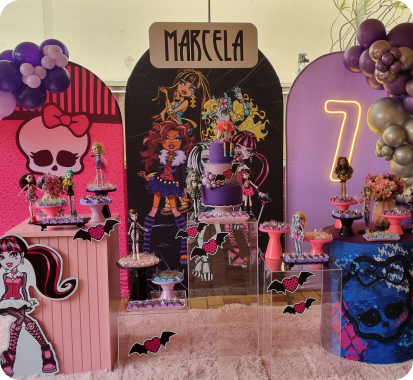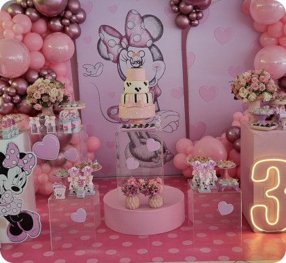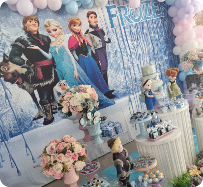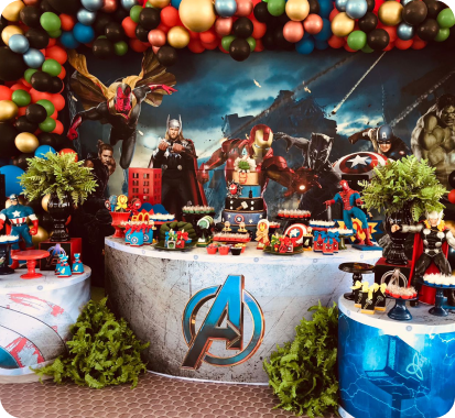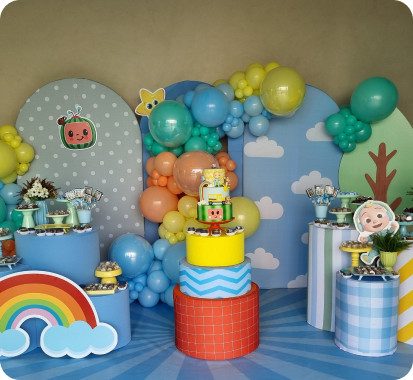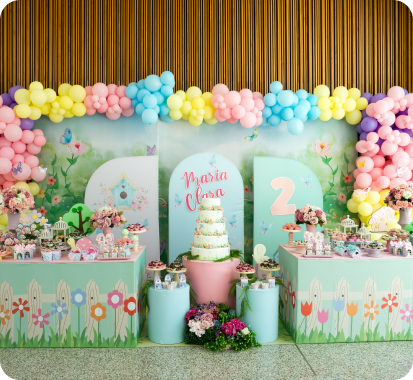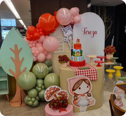 Cenografias completas para festas infantis, adultas e casamentos intimistas. Você escolhe o tema, nós cuidamos de tudo.