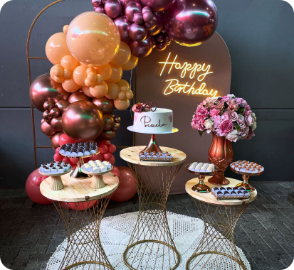 Oferecemos festas completas com buffet e decoração, pensadas sob medida para quem busca mais do que um evento: busca uma experiência.