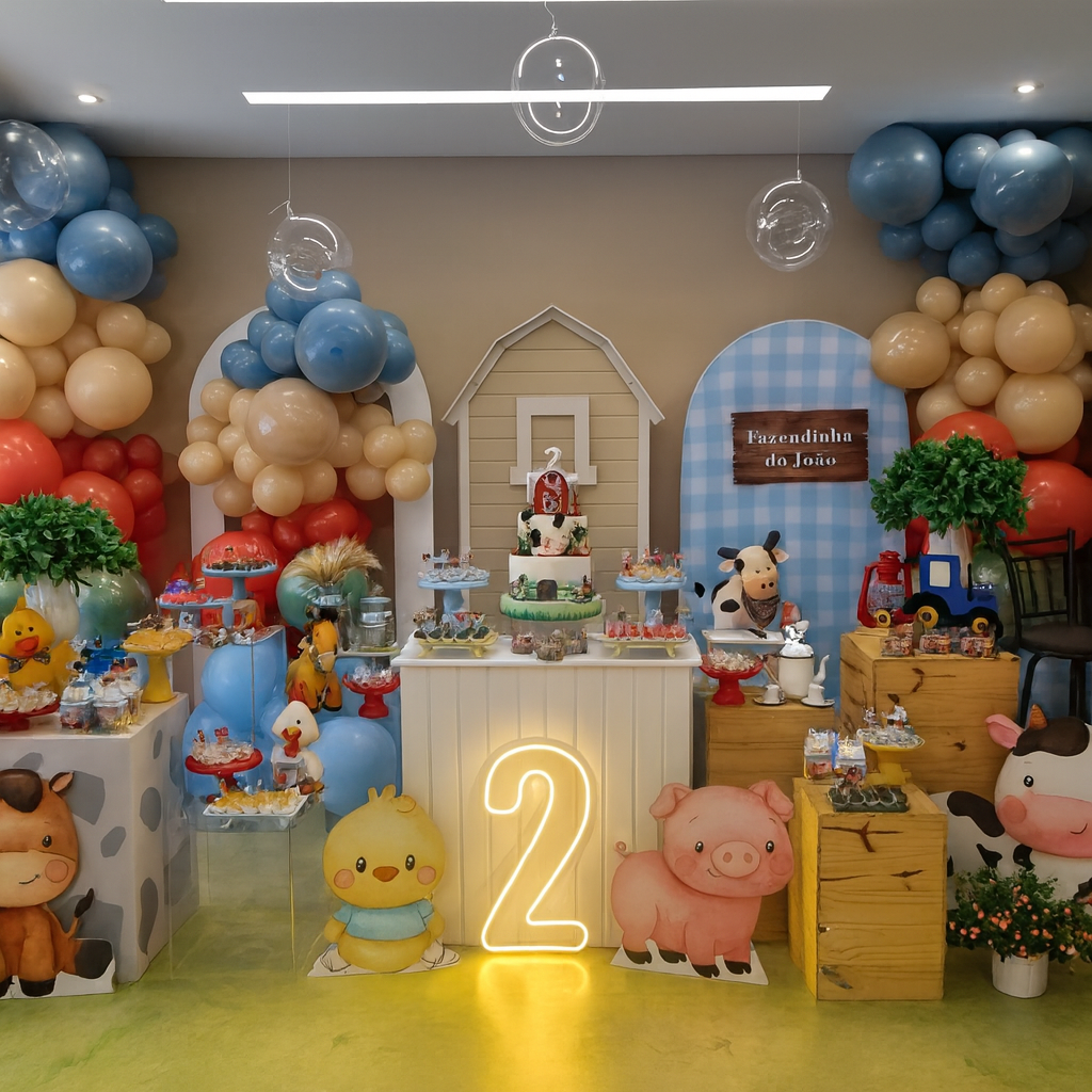 Cada detalhe é pensado com cuidado: da escolha do mobiliário ao cardápio personalizado, do tom dos balões ao estilo da mesa posta.